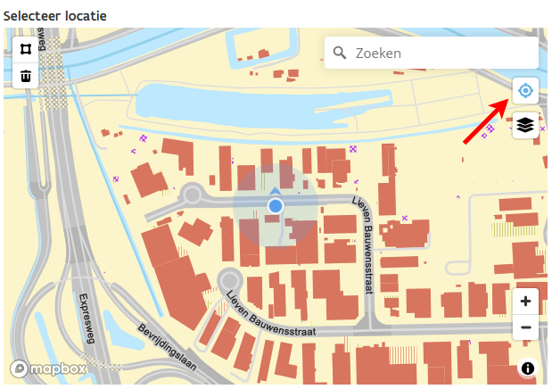 Mapbox ‘current location’-functionaliteit is nu ingeschakeld. Hierdoor kan de gebruiker zijn of haar huidige locatie delen en deze automatisch als input gebruiken voor een formulierveld van het type ‘kaart’. Deze functionaliteit werkt zowel op desktop, tablet als smartphone.