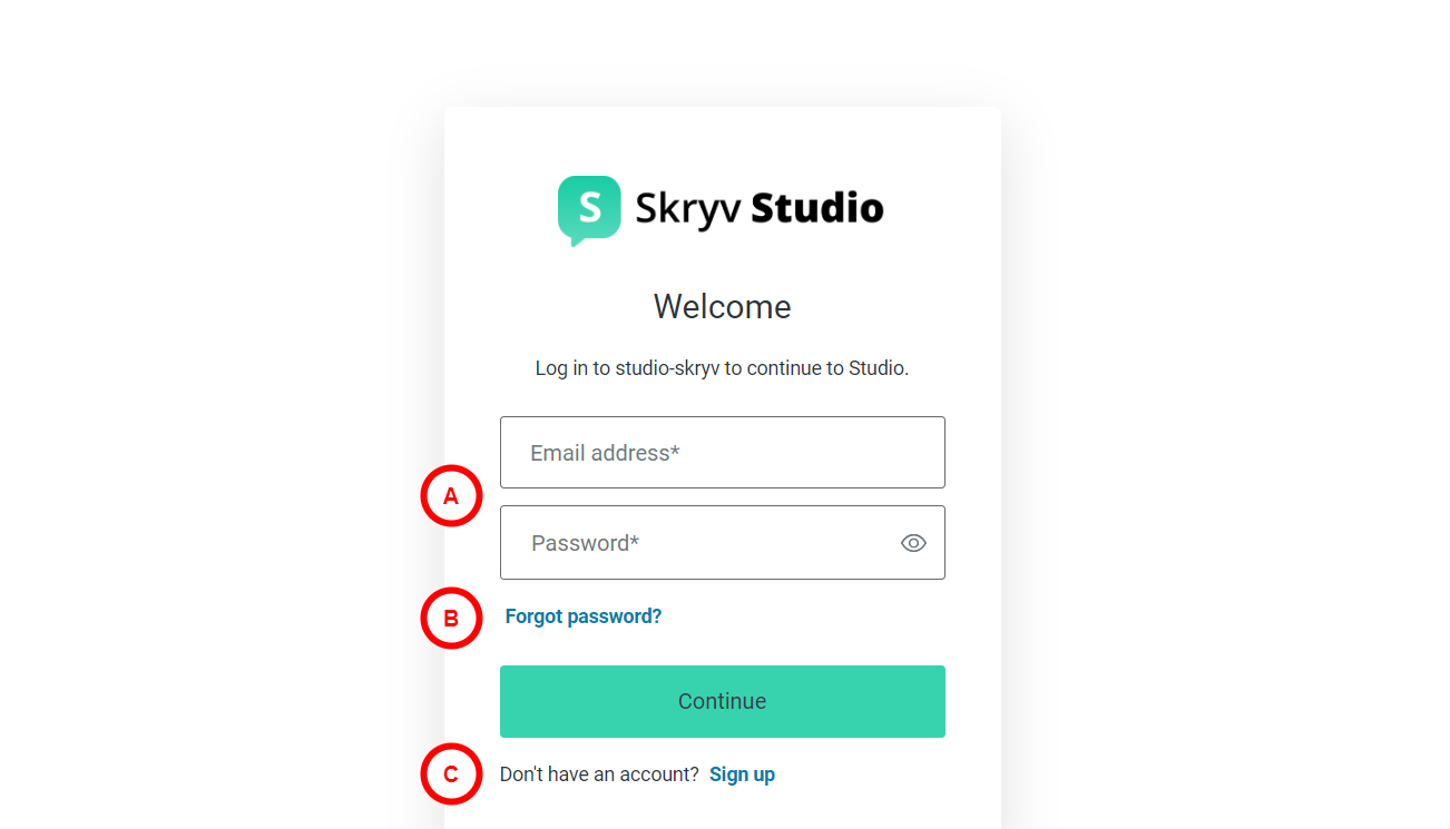 A | E-mailadres en wachtwoord | Voer je gegevens in en klik op de knop Continue |
