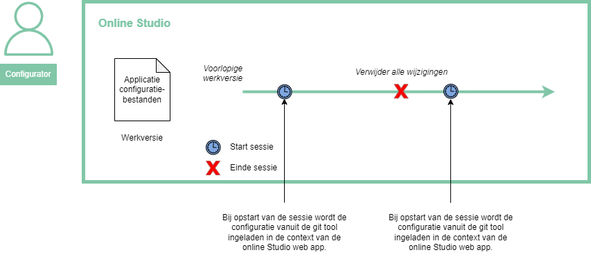 Nadat je wijzigingen hebt teruggedraaid, wordt de knop Verwijder alle wijzigingen beschikbaar. Hiermee schakel je de sessie en verwijder je dus de context. Bij opstart van een nieuwe sessie wordt de laatste versie van de configuratie vanuit de master branch in GitHub ingeladen.