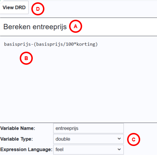 D | View DRD: keer terug naar het diagram waarin de beslissingsexpressie gekoppeld zit. |