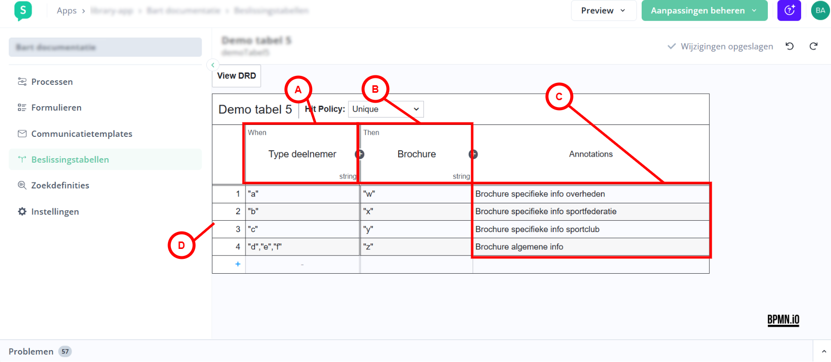 Beslissingstabel bewerken. Klik hier voor een overzicht van alle functionaliteiten.