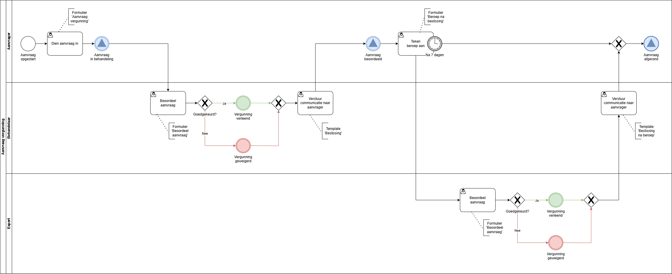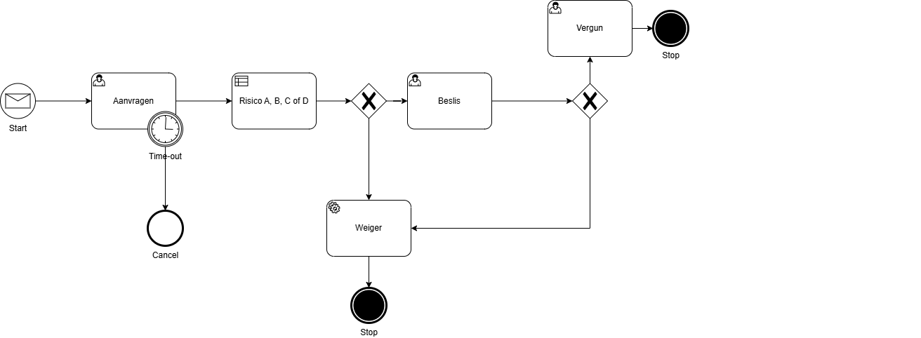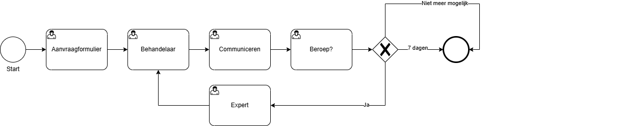 Een business owner kan op dit BPMN-diagram makkelijk aflezen hoe het proces in elkaar steekt.