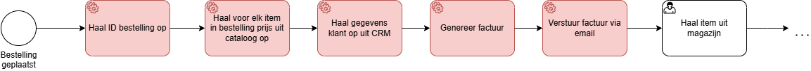 Hoewel ze een duidelijke uitvoerende (technische) waarde hebben, zijn de eerste vier stappen in onderstaand proces overbodige informatie voor de business. Ze bemoelijken dan ook de leesbaarheid van het BPMN-diagram.