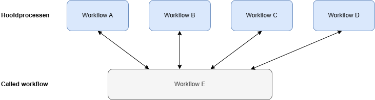 Een called workflow is een workflow die aangeroepen en opgestart wordt vanuit het hoofdproces. Dit gebeurt door middel van een call activity. De belangrijkste use case voor called workflows, is het hergebruiken van standaard processen. Dit kan binnen in één en hetzelfde hoofdproces of over meerdere hoofdprocessen heen.