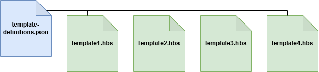 Een communicatie template of template.hbs bestand is een HTML-bestand verrijkt met handlebars. Hiervan zijn er typisch meerdere binnen één en dezelfde applicatie. Om globale en specifieke eigenschappen toe te kennen aan deze individuele templates, definiëren we per applicatie één template definition bestand (template-definition.json). Dit bestand volgt samen met de templates hetzelfde pad (bijvoorbeeld resources/dossiertypes/myDossierType/templates/template-definitions.json).