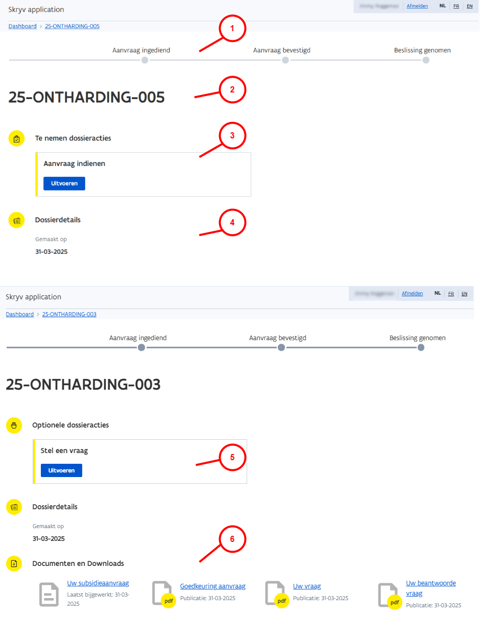 De dossierpagina toont alle details binnen één enkel dossier en bestaat uit volgende onderdelen: