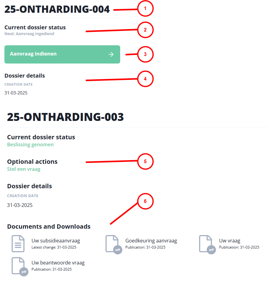 4 | Dossierdetails: aanmaakdatum dossier. |
