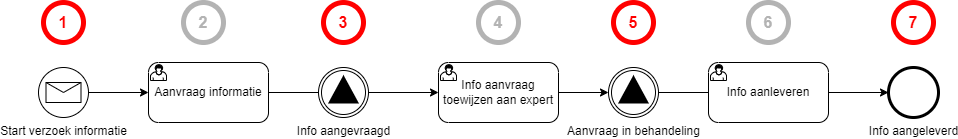 In de workflow hieronder wordt een procedure voor de aanvraag van informatie weergegeven. Er zijn vier events gedefinieerd.