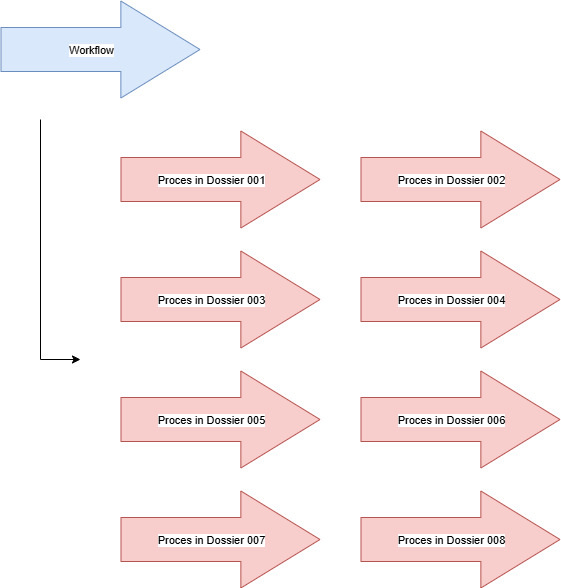 Zoals hierboven aangehaald, is het mogelijk dat binnen een proces een subproces genest zit, of dat er vanuit het proces andere processen opgestart worden. Deze zijn allemaal onderling gelinkt en kunnen (naargelang configuratie) informatie met elkaar uitwisselen. Uiteindelijk werken ze allen samen aan de opbouw van een concreet dossier.