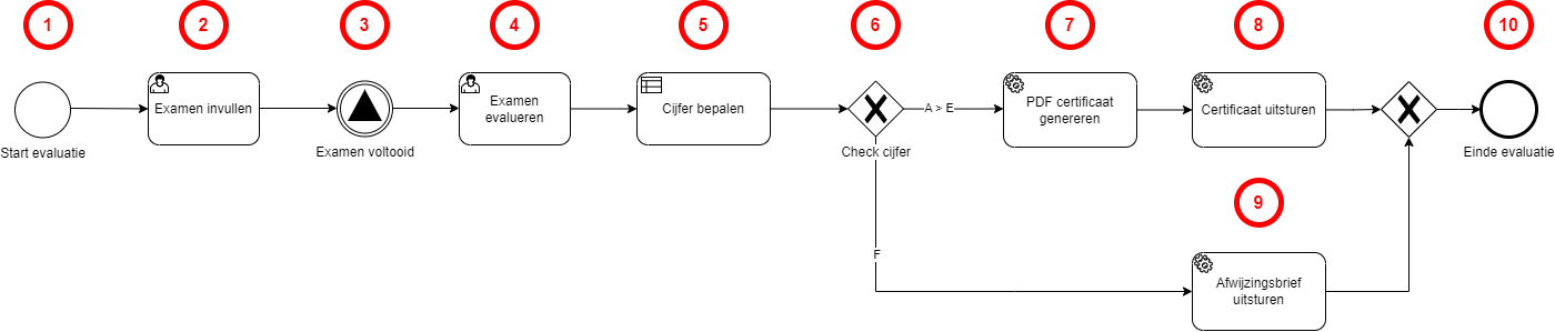 10 | End event | De evaluatie wordt als voltooid beschouwd. |