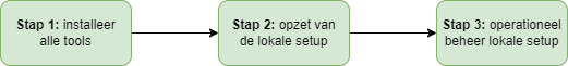 De lokale setup is bedoeld voor configuratoren en developers die in teamverband willen samenwerken aan de ontwikkeling van een applicatie. De lokale setup biedt volgende basiscomponenten: